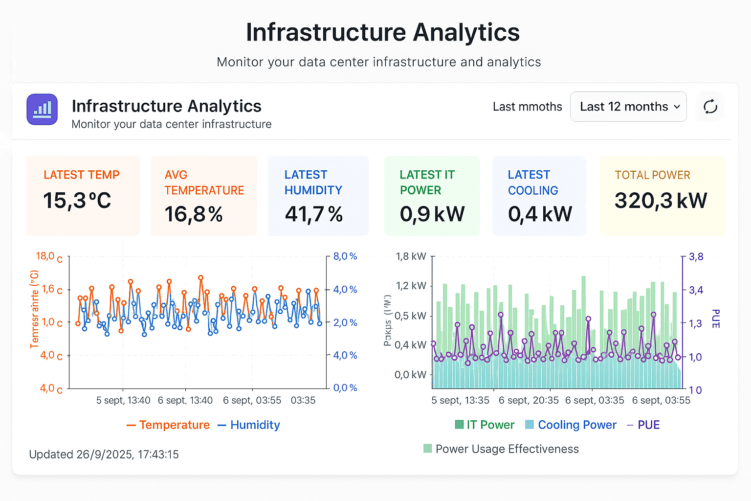 (BMS/DCIM/sensores vía BACnet/Modbus/SNMP/APIs).